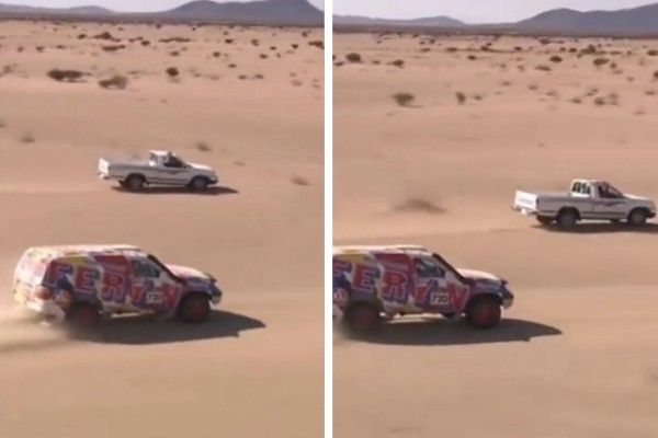 شاهد.. مقطع طريف لسائق سيارة "ونيت " يتحدى مركبة مشاركة في رالي داكار ويتمكن من تجاوزها بسرعة هائلة